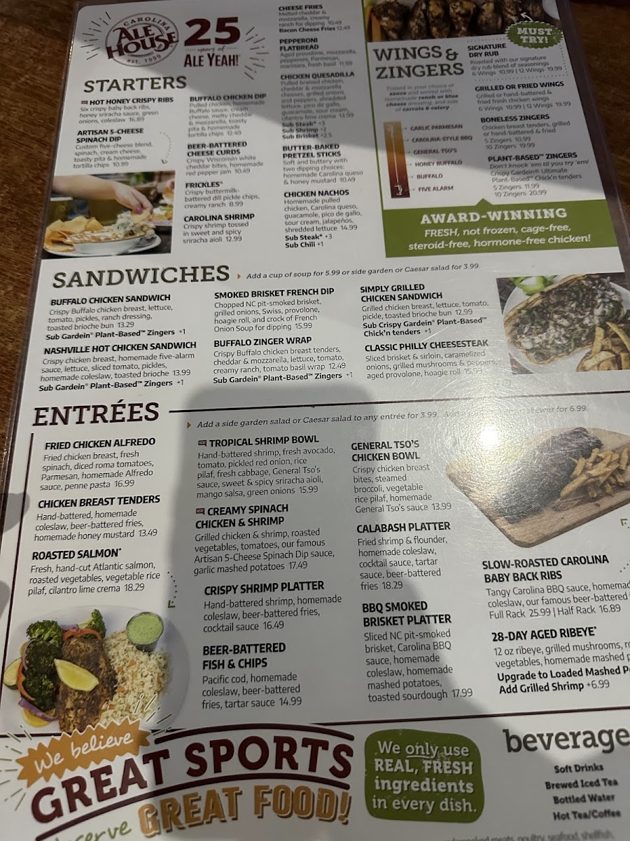 With friendly service and an inviting atmosphere, Carolina Ale House is an ideal spot to enjoy delicious food and great company. Come savor the flavors and create lasting memories!